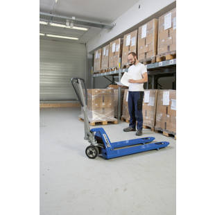 EUROKRAFT – Ручная гидравлическая тележка с QuickLift, цельнорезиновый направляющий ролик, грузовой ролик из полиуретана, длина вил 910 мм